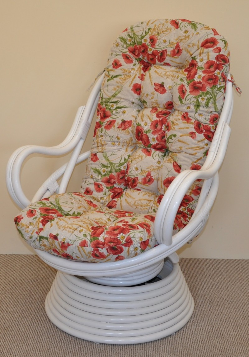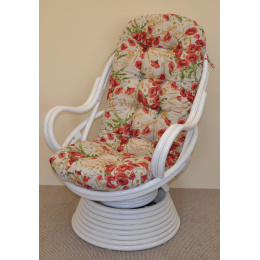 Ratanové houpací křeslo Swivel bílé polstr motiv vlčí máky