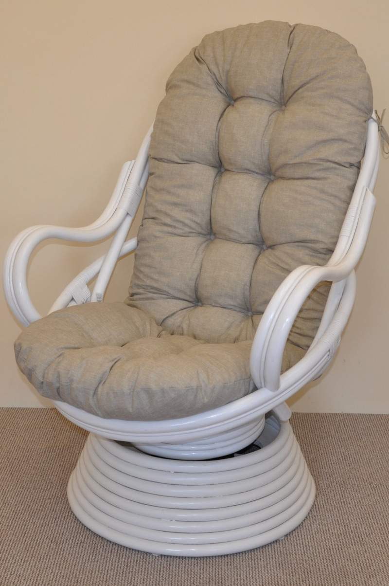 Ratanové houpací křeslo Swivel bílé polstr tmavě béžový melír
