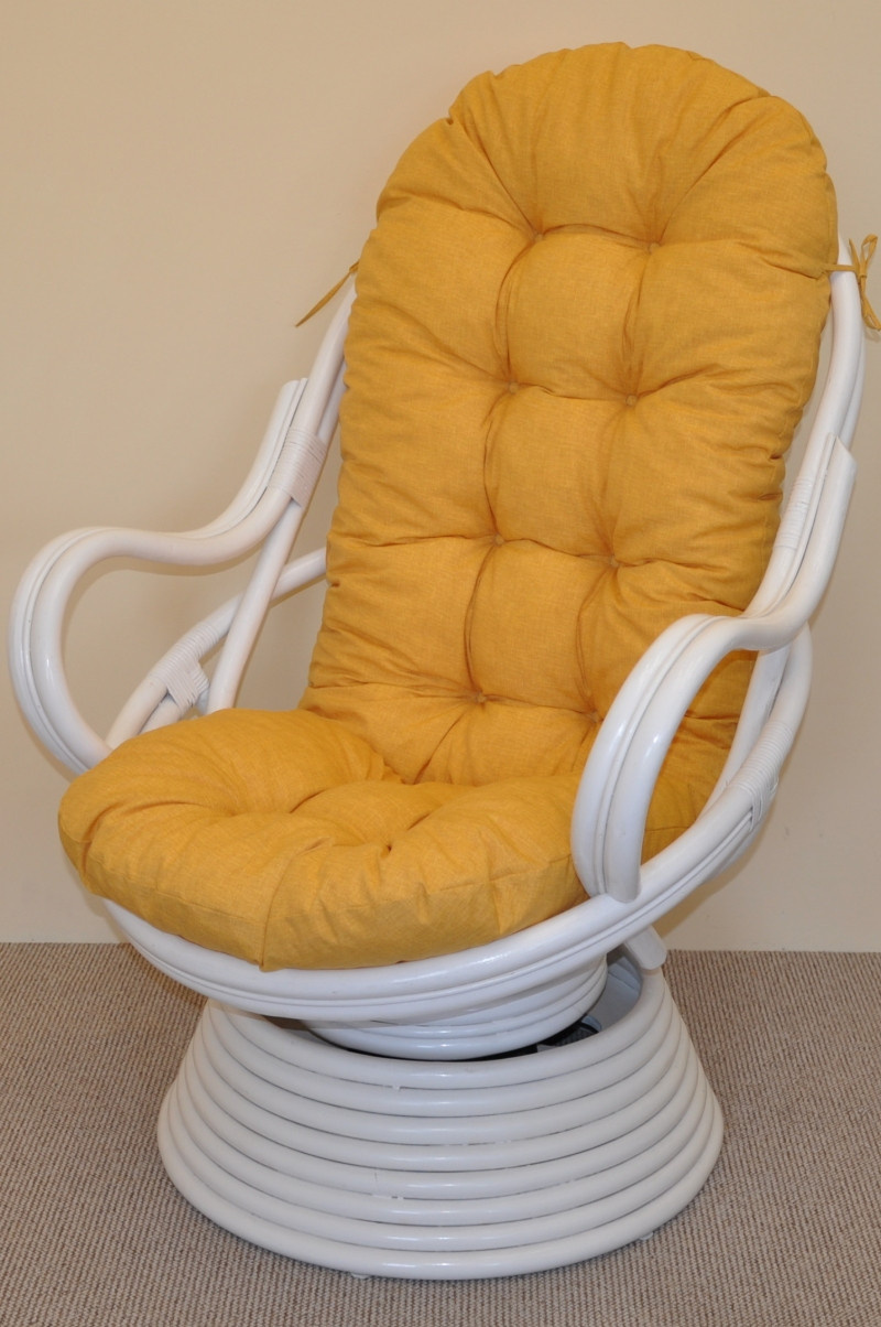 Ratanové houpací křeslo Swivel bílé polstr žlutý melír