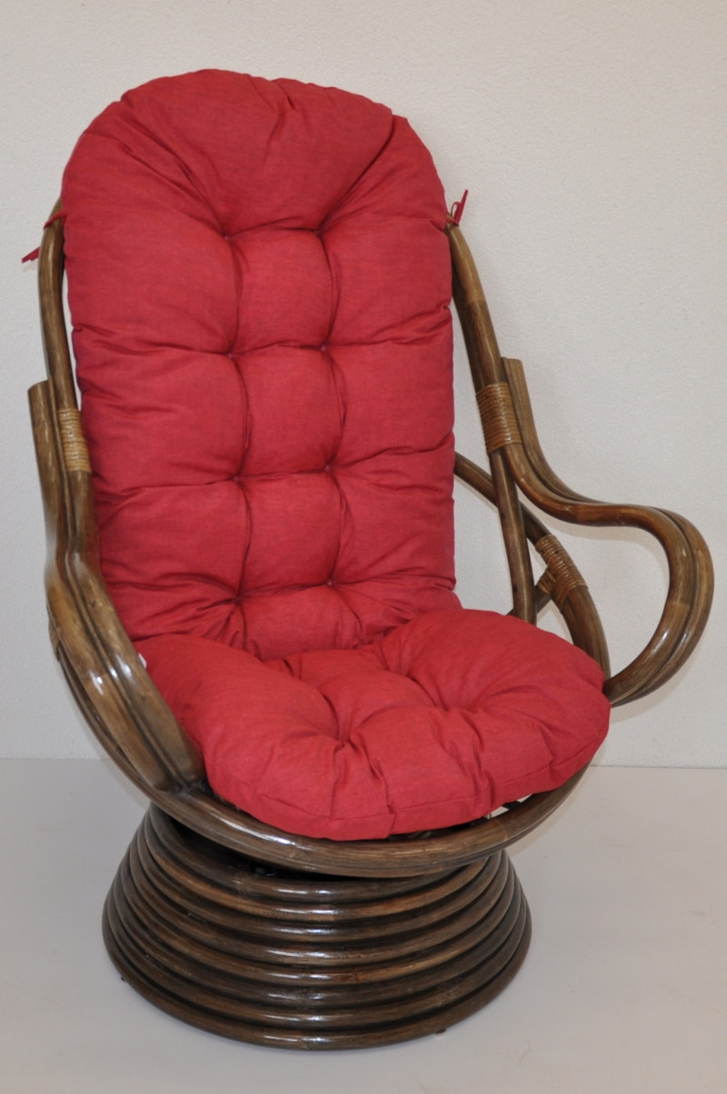 Ratanové houpací křeslo je vyrobeno z přírodního ratanu v barevném provedení konstrukce hnědé a polstru dle obrázku. | Barva ratanové konstrukce i ratanového výpletu je hnědá. Velikost ratanového křesla je 77x87x100 cm. Nosnost křesla swivel je 110kg. Kovový díl se čtyřmi pružinami zajišťuje pohodlné houpání a možnost otáčení křesla o 360 stupňů. Polstr je vyrobený v ČR a je pratelný na 40oC.