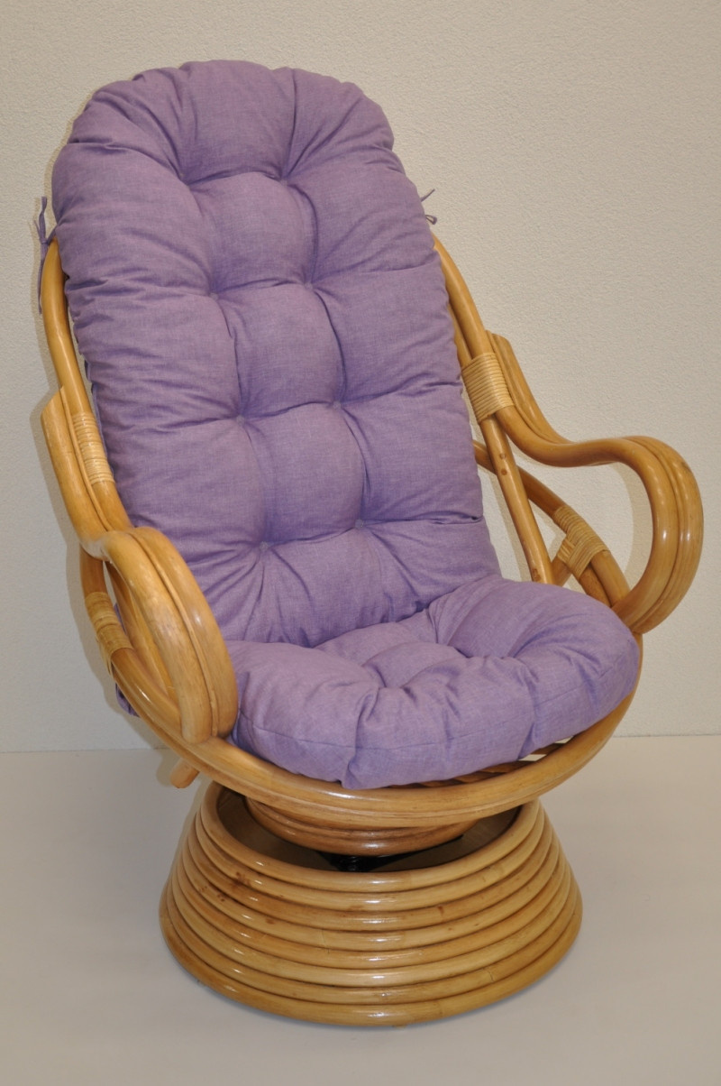 Ratanové houpací křeslo Swivel medové polstr fialový melír