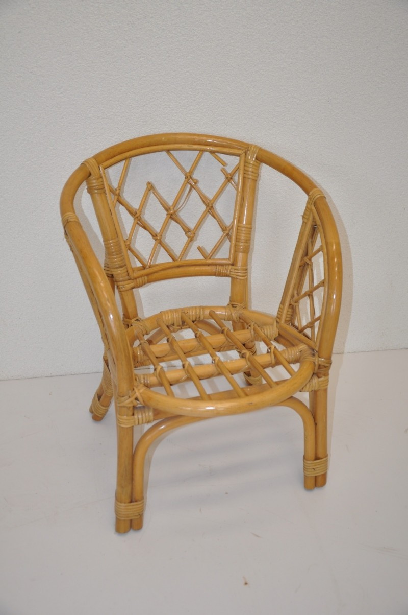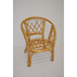 Ratanový nábytek - ratanové křeslo dětské Bahama | Barva ratanové konstrukce je medová. Velikost křesílka je 45x35x55 cm, výška sedu je 30 cm. Křesílko má prasklý výplet na opěradle.
