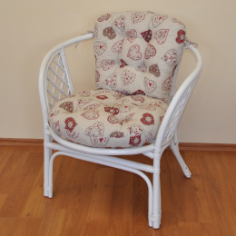 Ratanové křeslo Bahama bílé polstr motiv červené srdce