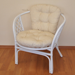 Ratanový nábytek - ratanové křeslo bahama samostatné s polstrem dle obrázku. | Barva ratanové konstrukce křesla je bílá. Nosnost křesla je 110 kg. Velikost křesla je 68x66x73 cm. Výška sedu je příjemných 43 cm. Kvalitní polstr je vyrobený v ČESKÉ REPUBLICE