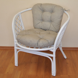 Ratanové křeslo Bahama bílé polstr tmavě béžový melír