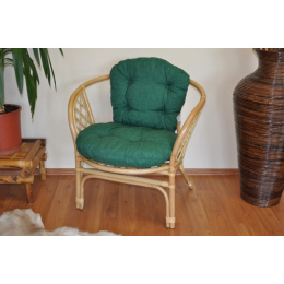 Ratanové křeslo Bahama medové polstr tmavě zelený melír