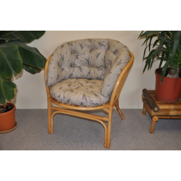 Ratanový nábytek - ratanové křeslo bahama samostatné s polstrem v MAXI provedení v barevném dekoru dle obrázku. | Barva ratanové konstrukce křesla je medová. Nosnost křesla je 110 kg. Velikost křesla je 68x66x73 cm. Výška sedu je příjemných 43 cm. Kvalitní polstr je vyrobený v ČESKÉ REPUBLICE
