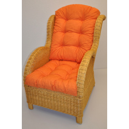Pohodlné odpočinkové křeslo z přírodního ratanu. Konstrukce křesla je vyrobena ze silných ratanových tyčí a výplet je tvořen ratanovými proutky o průměru cca 3 mm | Barva ratanové konstrukce a výpletu je medová. Velikost křesla Ear je 63x86x98 cm. Nosnost křesla Ear je 120 kg. Kvalitní polstr je vyrobený v České republice.