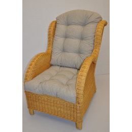 Pohodlné odpočinkové křeslo z přírodního ratanu. Konstrukce křesla je vyrobena ze silných ratanových tyčí a výplet je tvořen ratanovými proutky o průměru cca 3 mm | Barva ratanové konstrukce a výpletu je medová. Velikost křesla Ear je 63x86x98 cm. Nosnost křesla Ear je 120 kg. Kvalitní polstr je vyrobený v České republice.