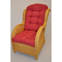 Pohodlné odpočinkové křeslo z přírodního ratanu. Konstrukce křesla je vyrobena ze silných ratanových tyčí a výplet je tvořen ratanovými proutky o průměru cca 3 mm | Barva ratanové konstrukce a výpletu je medová. Velikost křesla Ear je 63x86x98 cm. Nosnost křesla Ear je 120 kg. Kvalitní polstr je vyrobený v České republice.