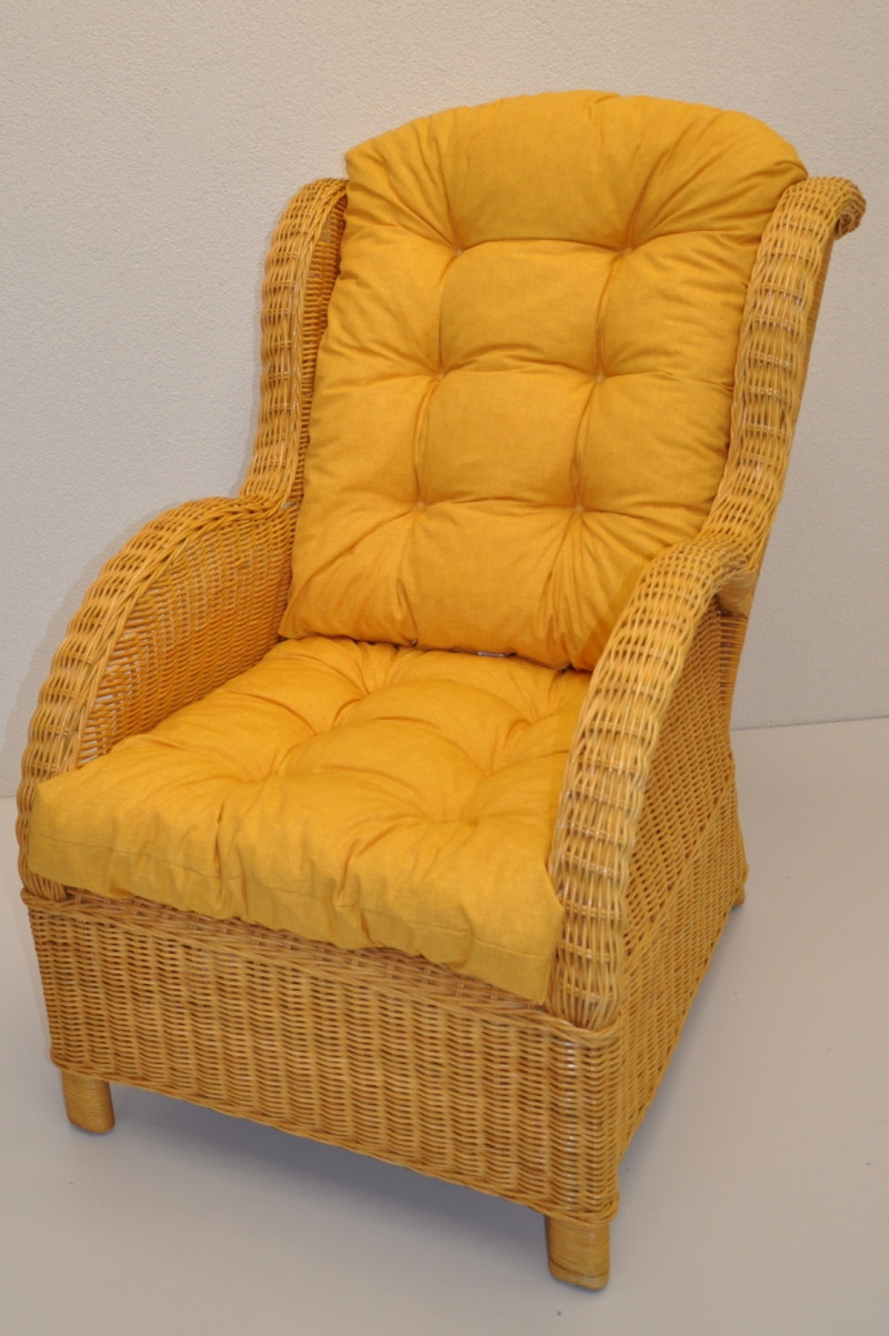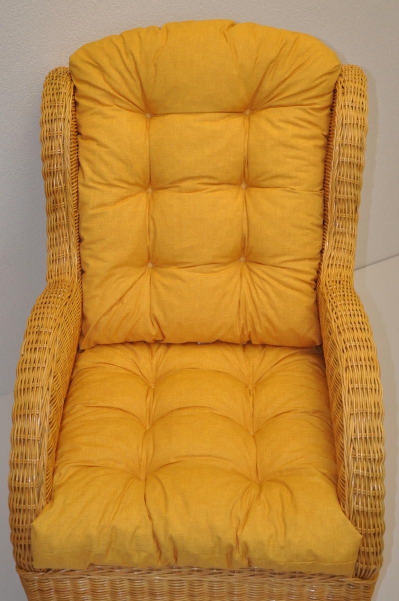 Ratanové křeslo Ear medové polstr žlutý melír