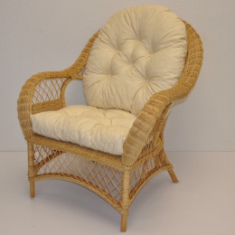 Nádherné ratanové křeslo vyrobené z přírodního ratanu s kostrou z masivních ratanový tyčí a výpletem z ratanových proutků. | Křeslo je díky propracované a příjemně tvarované konstrukci velice pohodlné. Barva ratanové konstrukce i ratanového výpletu je medová. Velikost křesla Florida je 76x80x97 cm, nosnost křesla je 130 kg a výška sedu je 45 cm. Polstry z kvalitní potahové látky jsou vyrobeny v České republice.