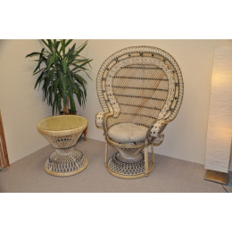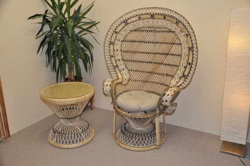 Ratanové křeslo King se stolkem - polstr béžový