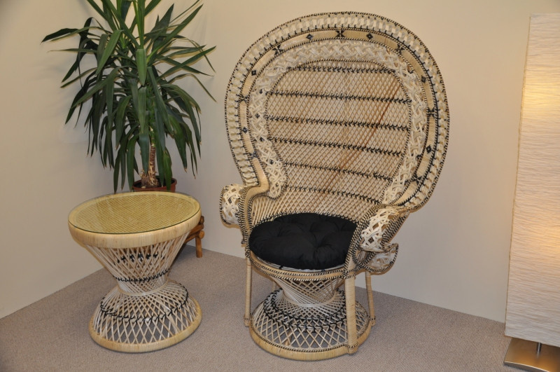 Ratanové křeslo King se stolkem - polstr černý