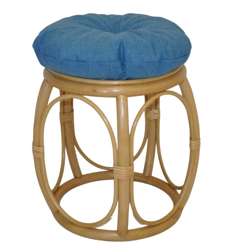Ratanový nábytek - ratanová taburetka s polstrem. | Průměr taburetky v horní části je 35 cm. Výška taberetky je 38 cm. Nosnost taburetky je 110 kg. Barva ratanové konstrukce je medová. Polstr je vyrobený v České republice a je pratelný na 40oC. Materiál polstru je 100% bavlna, výplň polstru je drcený molitan.