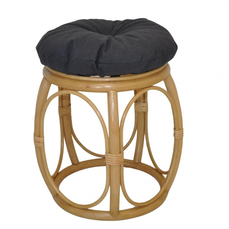 Ratanová taburetka široká medová polstr tmavě šedý melír