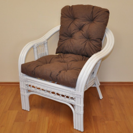 Ratanové křeslo Rio De Janeiro bílé - polstr hnědý melír