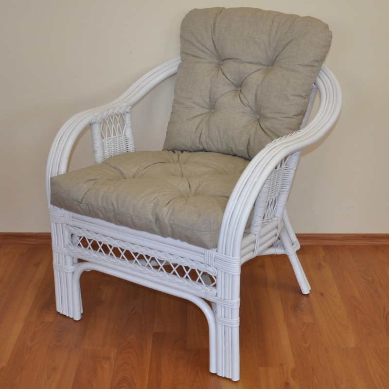 Ratanové křeslo Rio De Janeiro bílé - polstr tmavě béžový melír