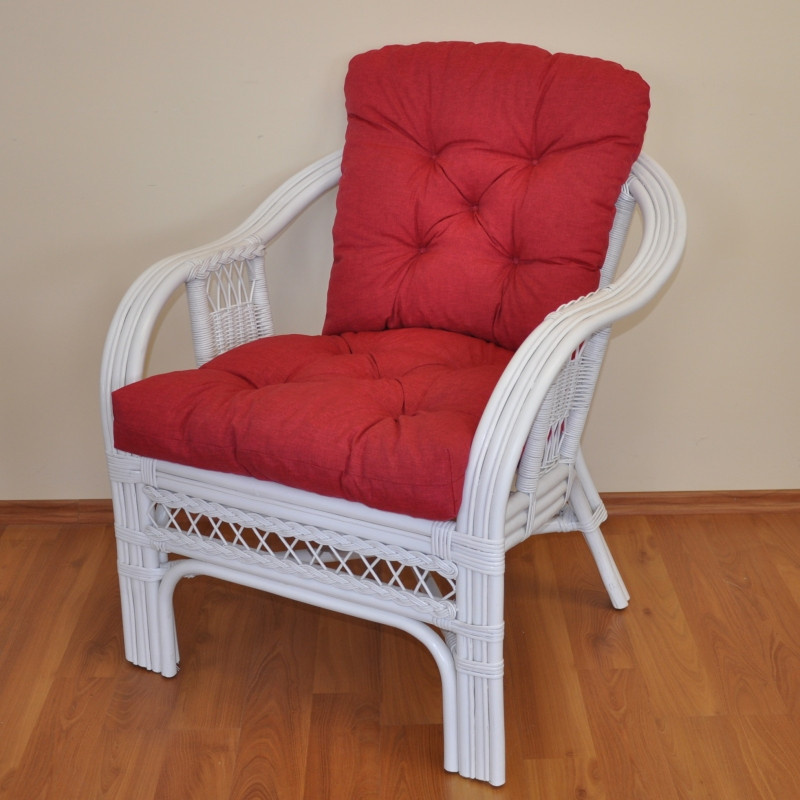 Ratanové křeslo Rio De Janeiro bílé - polstr vínový melír