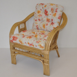 Ratanové křeslo Rio De Janeiro medové - polstr motiv květiny