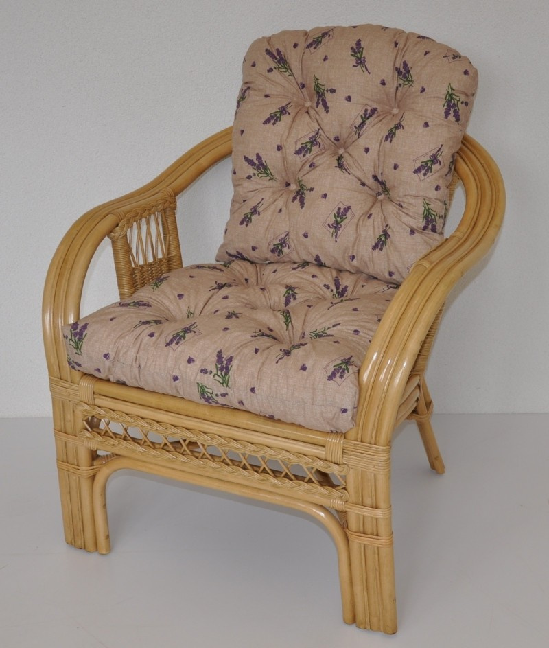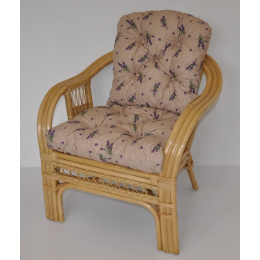 Ratanové křeslo Rio De Janeiro medové - polstr motiv levandule