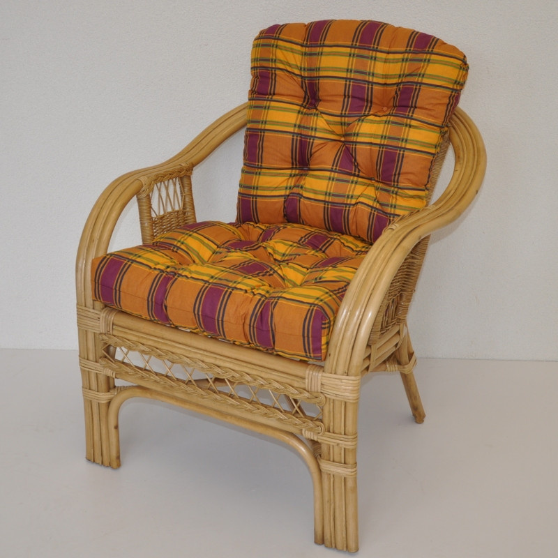 Křeslo Rio De Janeiro je vyrobené z přírodního ratanu. | Konstrukce ratanového křesla je na většině míst trojitá a tím velice pevná. Křeslo je velice pohodlné díky rozložitému tvaru a kvalitním polštářům. Barva ratanové konstrukce i ratanového výpletu je medová. Velikost křesla je 68x75x74 cm. Nosnost křesla je 125 kg. Výška sedu je 44 cm. Polstry na křeslo jsou vyrobeny v České republice a vyznačují se vysokou kvalitou zpracování.