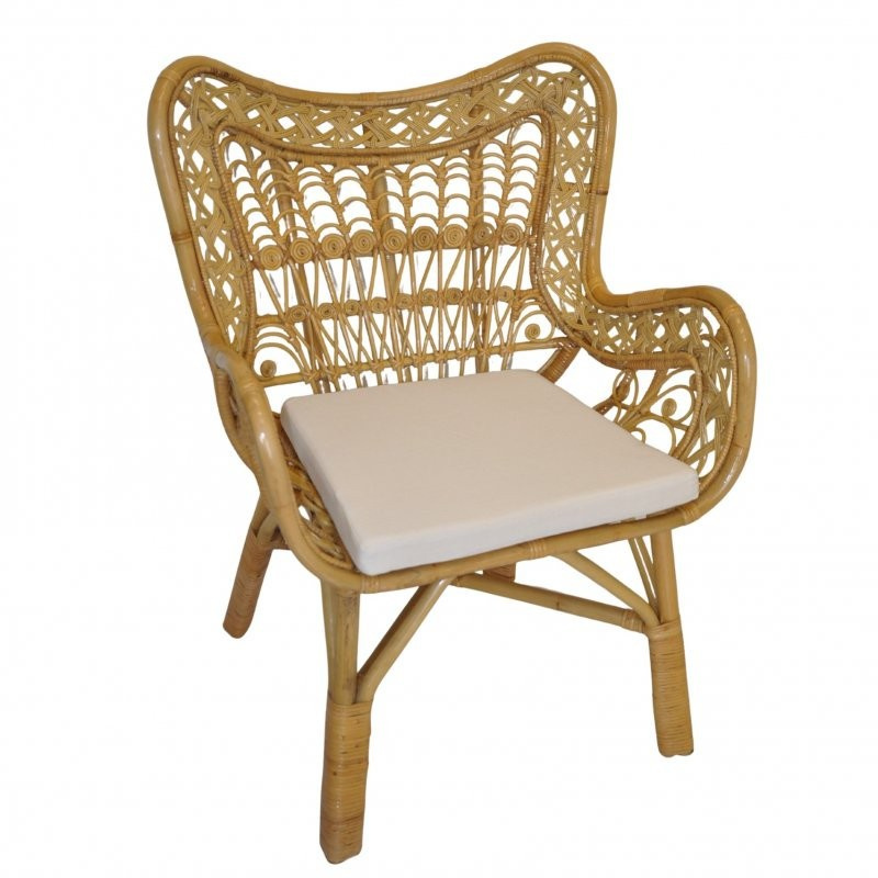 Křeslo vyrobené z přírodního ratanu. | Barva ratanové konstrukce i ratanového výpletu je medová. Velikost křesla je 77x70x103 cm. Výška sedu křesla je 50 cm.