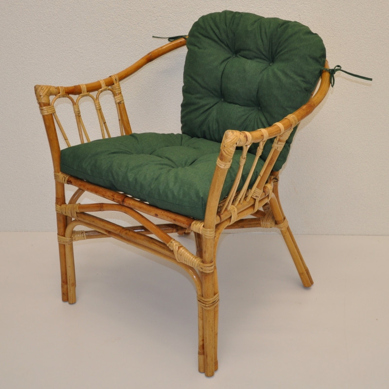 Ratanové křeslo Subaliu - polstr tmavě zelený melír