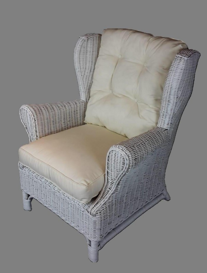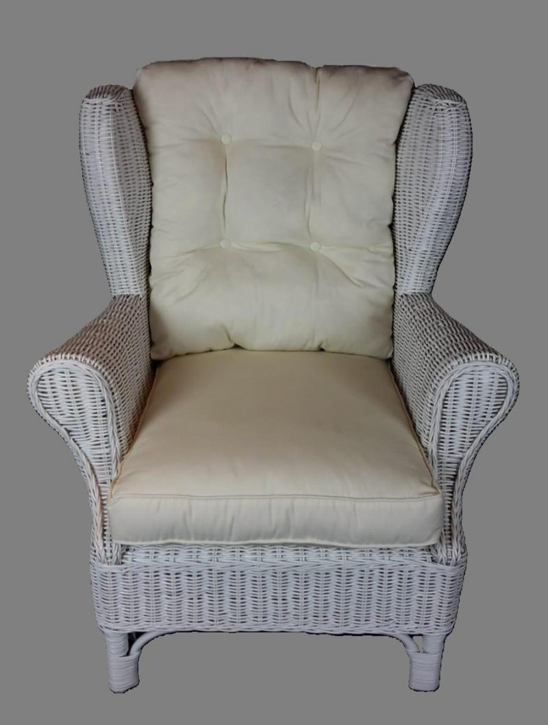 Ratanové křeslo ušák bílé polstr bílý FL