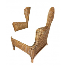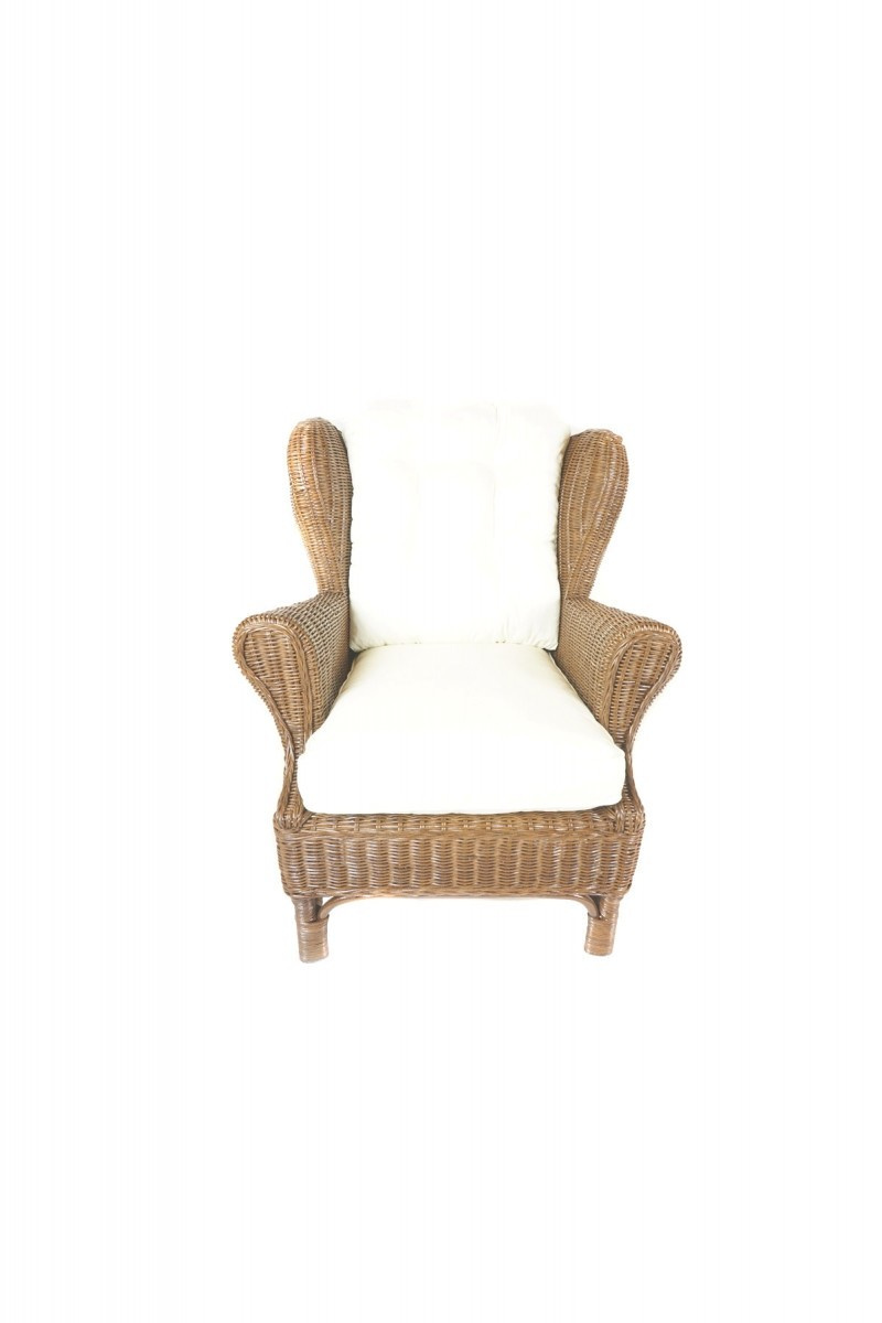 Ratanové křeslo ušák hnědé polstr bílý FL