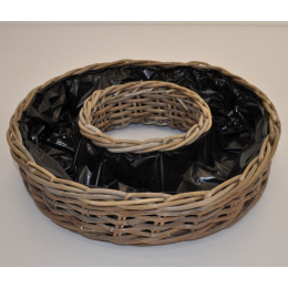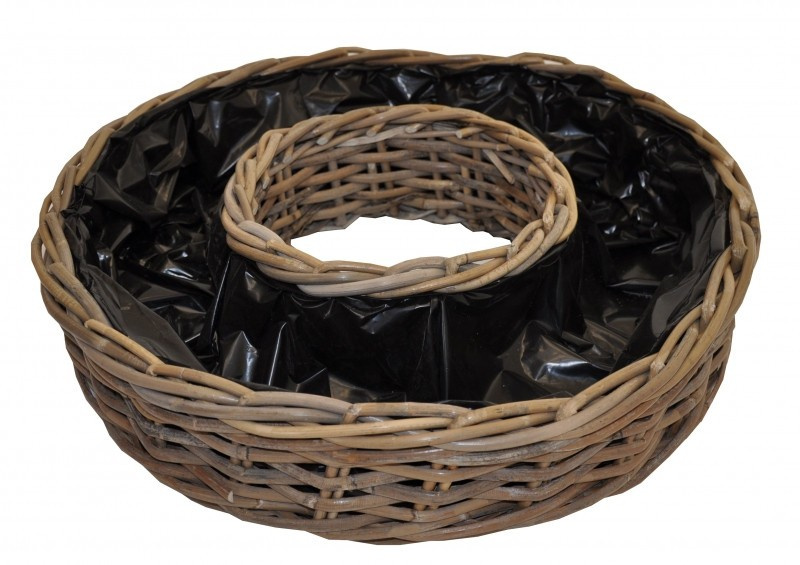 Ratanový košík je vyroben z přírodního ratanu kubu. | Průměr truhlíku je 50 cm, výška 11,5 cm. Průměr vnitřního kruhového otvoru je 21 cm. Košík je vyplněn černou plastovou folií. Košík je vhodný k osázení okrasnými či sezónními rostlinami.