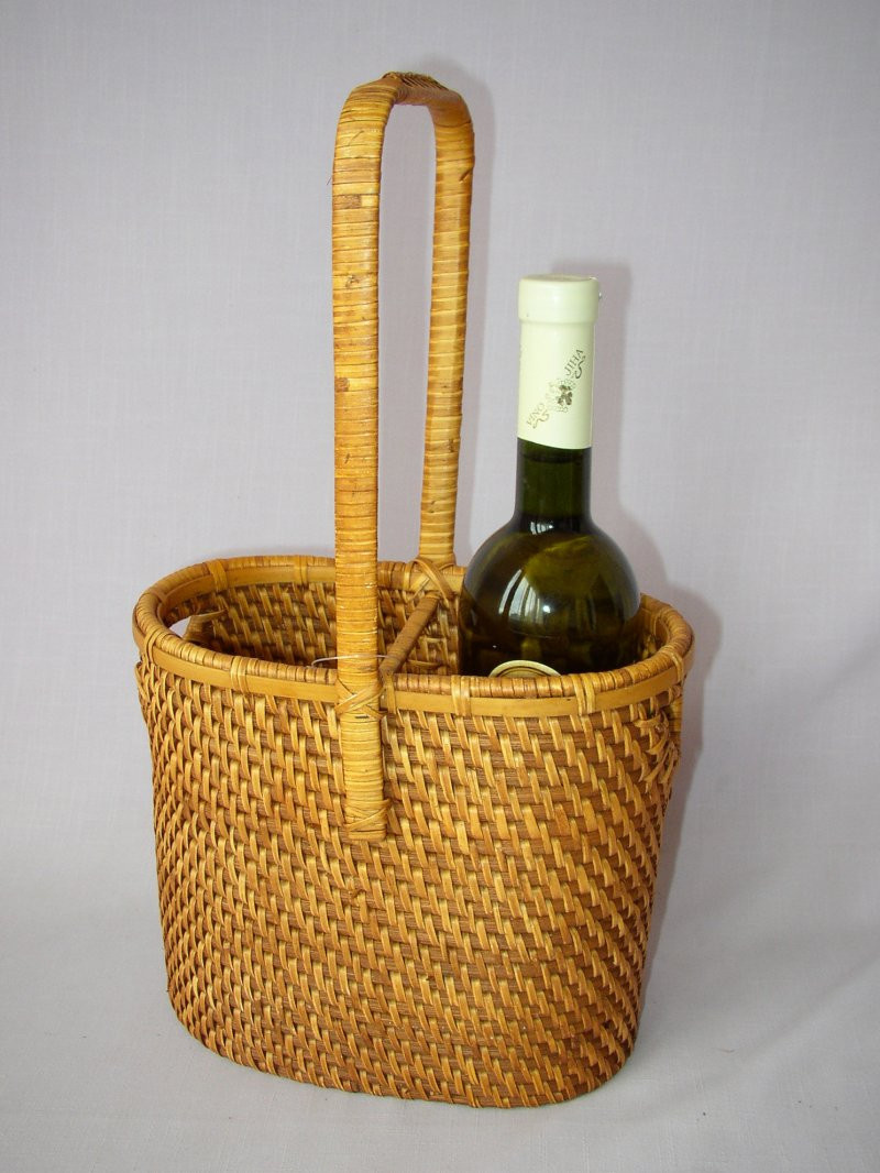 Ratanový košík na 2 láhve, prodáváme bez dekorace |