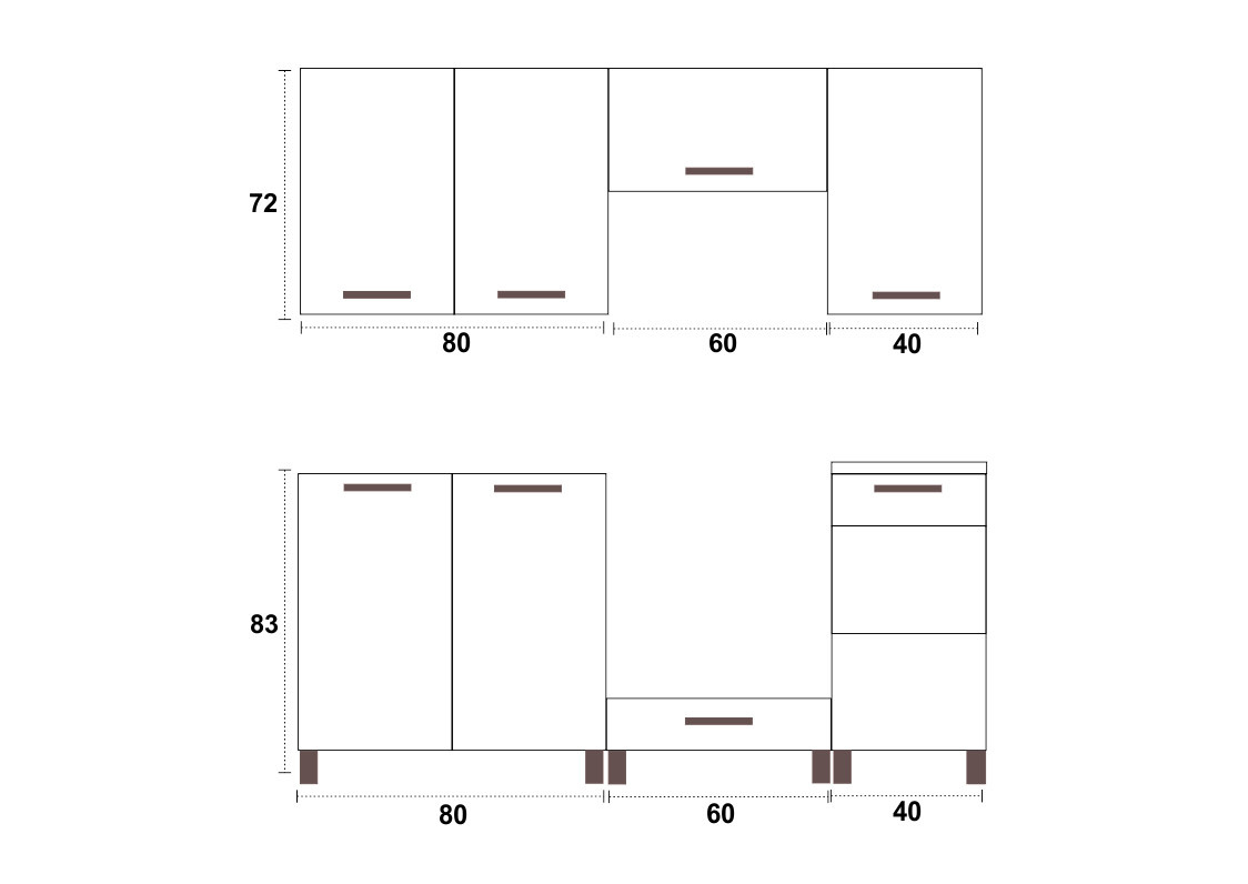 Potýkáte-li se s malými prostory a každý centimetr je pro Vás důležitý, pak je kuchyňská linka Despacito tou správnou volbou pro Váš domov. Je vyrobena v moderním designu a skříňky si můžete sestavit buď tak, jak vidíte na úvodní fotografii, nebo si je můžete sestavit podle svých potřeb. Kuchyňská linka je na nožkách a díky tomu je prostor pod linkou lépe přístupný při vytírání, či zametání drobků. Korpusy skříněk jsou bílé, dvířka jsou ve vysokém lesku ve třech módních odstínech a se třemi typy úchytek. Všechny tyto varianty najdete v naší nabídce. Všechny skříňky této sestavy jsou dodávány v demontu. Součástí je montážní plánek včetně všech potřebných spojovacích materiálů. Cena je uvedna za sestavu vyobrazenou na úvodní fotografii BEZ PRACOVNÍ DESKY, s úchytkami které jsou vyobrazeny v doplňkových fotografiích. Vyobrazené spotřebiče a dekorace nejsou v ceně.