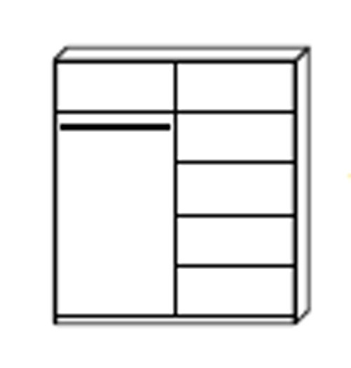 Skříň je vyrobena z kvalitního lamina. Díky svému vnitřnímu uspořádání nabízí dostatek úložného prostoru a posuvné dveře šetří prostor. Skříň je vhodná do ložnice, dětského nebo studentského pokoje, do předsíně i kanceláře. Vnitřní uspořádání skříně je vyobrazeno na fotografii. Skříň je dodávána v demontu a součástí je montážní plánek včetně všech potřebných spojovacích materiálů. Vyobrazené dekorace nejsou v ceně.
