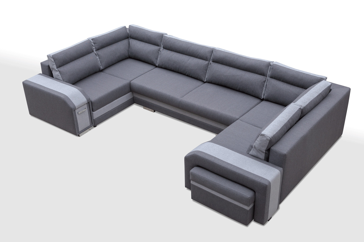 Sedací souprava Association ve tvaru U, osloví každého, kdo preferuje moderní vzhled a zároveň pohodlí a praktičnost. Sedací souprava je velmi pohodlná a dostatečně velká na posezení s přáteli, nebo rodinou. Pro případ, že se návštěva zdrží přes noc, je sedací souprava vybavena rozkladem. Pomocí automatu jednoduše sedací sopuravu přeměníte v prostorné lůžko. Sedací souprava má 3 praktické úložné prostory a další úložný prostor najdete v područi, kde je důmyslně ukrytý bar a také v taburetu. Výplň sedáků tvoří kombinace pružin faliste s kvalitní PUR pěnou. Návod na rozložení můžete shlédnout v krátkém gifu, který najdete v doplňkových fotografiích, kde také najdete fotografii s detailními rozměry. Sedací soupravu nabízíme v kvalitní potahové látce se zajímavým lemováním, a to v několika barevných provedeních. Sedací soupravu nabízíme v levém i pravém provedení, nebo také v prodedení do L. Sedací souprava bude dodána v kombinaci potahových látek, která je vyobrazena na úvodní fotografii. Vyobrazené dekorace nejsou v ceně.