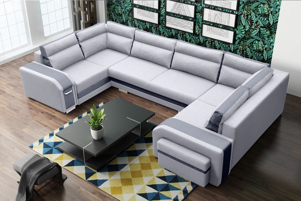 Sedací souprava Association ve tvaru U, osloví každého, kdo preferuje moderní vzhled a zároveň pohodlí a praktičnost. Sedací souprava je velmi pohodlná a dostatečně velká na posezení s přáteli, nebo rodinou. Pro případ, že se návštěva zdrží přes noc, je sedací souprava vybavena rozkladem. Pomocí automatu jednoduše sedací sopuravu přeměníte v prostorné lůžko. Sedací souprava má 3 praktické úložné prostory a další úložný prostor najdete v područi, kde je důmyslně ukrytý bar a také v taburetu. Výplň sedáků tvoří kombinace pružin faliste s kvalitní PUR pěnou. Návod na rozložení můžete shlédnout v krátkém gifu, který najdete v doplňkových fotografiích, kde také najdete fotografii s detailními rozměry. Sedací soupravu nabízíme v kvalitní potahové látce se zajímavým lemováním, a to v několika barevných provedeních. Sedací soupravu nabízíme v levém i pravém provedení, nebo také v prodedení do L. Sedací souprava bude dodána v kombinaci potahových látek, která je vyobrazena na úvodní fotografii. Vyobrazené dekorace nejsou v ceně.