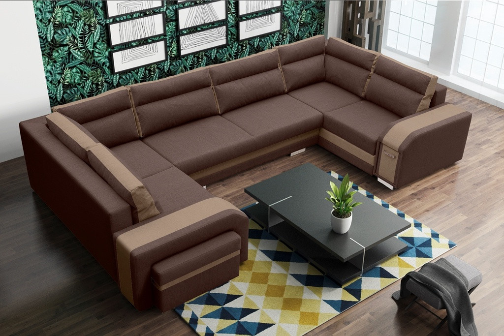 Sedací souprava Association ve tvaru U, osloví každého, kdo preferuje moderní vzhled a zároveň pohodlí a praktičnost. Sedací souprava je velmi pohodlná a dostatečně velká na posezení s přáteli, nebo rodinou. Pro případ, že se návštěva zdrží přes noc, je sedací souprava vybavena rozkladem. Pomocí automatu jednoduše sedací sopuravu přeměníte v prostorné lůžko. Sedací souprava má 3 praktické úložné prostory a další úložný prostor najdete v područi, kde je důmyslně ukrytý bar a také v taburetu. Výplň sedáků tvoří kombinace pružin faliste s kvalitní PUR pěnou. Návod na rozložení můžete shlédnout v krátkém gifu, který najdete v doplňkových fotografiích, kde také najdete fotografii s detailními rozměry. Sedací soupravu nabízíme v kvalitní potahové látce se zajímavým lemováním, a to v několika barevných provedeních. Sedací soupravu nabízíme v levém i pravém provedení, nebo také v prodedení do L. Sedací souprava bude dodána v kombinaci potahových látek, která je vyobrazena na úvodní fotografii. Vyobrazené dekorace nejsou v ceně.