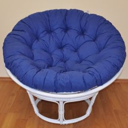 Ratanový papasan 100 cm bílý, polstr tmavě modrý melír
