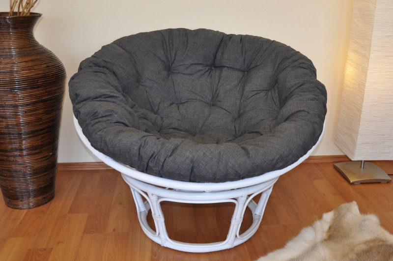 Ratanový nábytek - ratanové křeslo papasan je vyrobeno z přírodního ratanu s barvou ratanové konstrukce odpovídající fotografii výrobku. | Barva ratanové konstrukce je bílá. Průměr papasanu je 110 cm. Nosnost křesla je 110 kg. Součástí křesla papasan je kvalitní polstr vyrobený z kvalitní pevné potahové látky. Polstr na toto křeslo papasan je vyrobený v České republice. Polstr je vyrobený z kvalitní látky a vyznačuje se vysokou kvalitou zpracování. Polstry pro nás vyrábí firma AXIN Cuschions s.r.o., která zaměstnává výhradně místní vyučené švadleny z České republiky. Tímto způsobem se snažíme podporovat výrobu a zaměstnanost v naší republice. Náplň polstru drcený molitan a polstr lze prát ručně na 40o C.