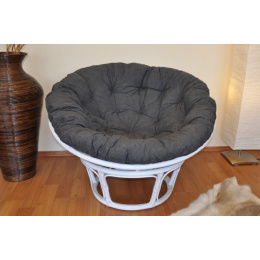 Ratanový papasan 110 cm bílý polstr tmavě šedý melír