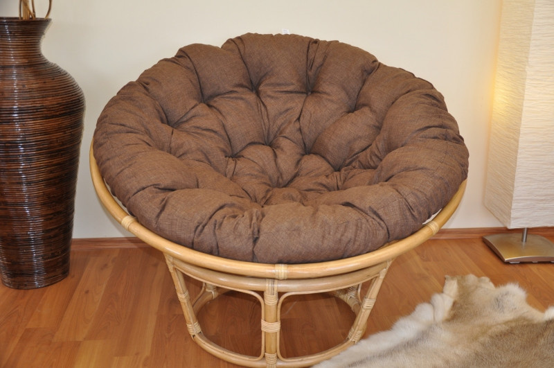 Ratanový papasan 110 cm medový polstr hnědý melír