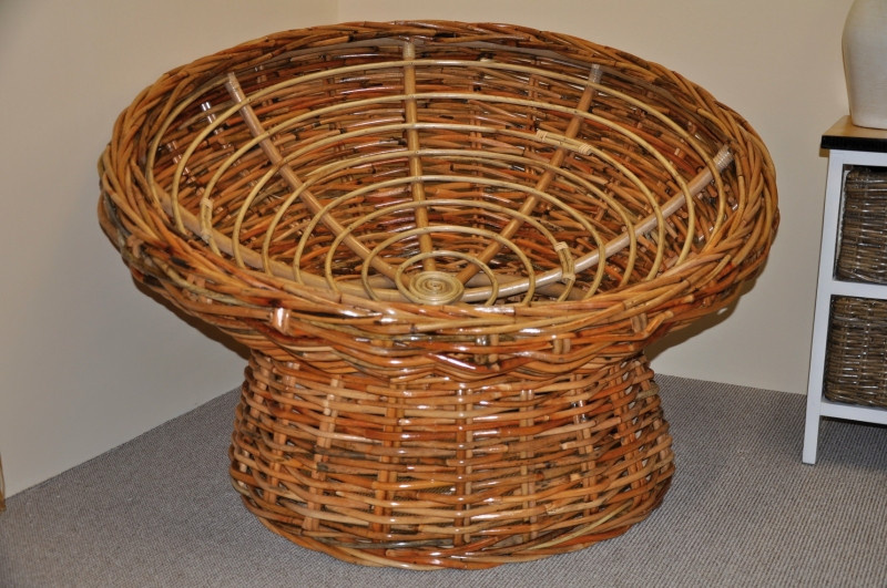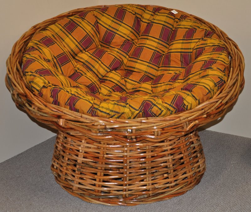 Papasan s konstrukcí z masivních ratanových tyčí a výpletem z celých (nepůlených) prutů ratanu Abaka. | Materiál konstrukce - přírodní ratanové tyče. Materiál výpletu - přírodní ratan Abaka - celé pruty. Průměr papasanu v horní části je 120 cm. Nosnost křesla je 120 kg. Výška sedu je 42 cm. Polst je vyrobený v České republice a je pratelný na 40oC.