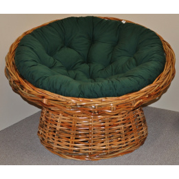 Papasan s konstrukcí z masivních ratanových tyčí a výpletem z celých (nepůlených) prutů ratanu Abaka. | Materiál konstrukce - přírodní ratanové tyče. Materiál výpletu - přírodní ratan Abaka - celé pruty. Průměr papasanu v horní části je 120 cm. Nosnost křesla je 120 kg. Výška sedu je 42 cm. Polst je vyrobený v České republice a je pratelný na 40oC.