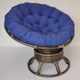 Ratanový papasan houpací pružinový v barvě ratanu hnědá, barevné provedení polstru dle obrázku. | Barva ratanové konstrukce je hnědá Pohodlné houpání zajišťuje soustava 4 pružin uchycená v kovovém pouzdře. Křeslo je zároveň otočné o 360 stupňů. Houpat a táčet se můžete tedy zároveň. Velikost ratanového křesla je 110x110x82 cm, průměr horní části 110 cm, nosnost 110 kg. Křeslo dodáváme ve smontovaném stavu. Pro zajištění maximální pevnosti jsou hlavní spoje ratanové konstrukce šroubovány. Polstr je vyrobený v České republice a je pratelný.