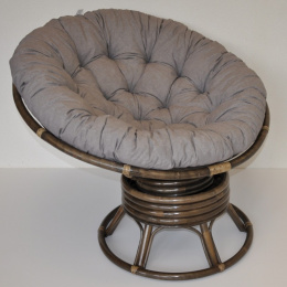 Ratanový papasan houpací pružinový v barvě ratanu hnědá, barevné provedení polstru dle obrázku. | Barva ratanové konstrukce je hnědá Pohodlné houpání zajišťuje soustava 4 pružin uchycená v kovovém pouzdře. Křeslo je zároveň otočné o 360 stupňů. Houpat a táčet se můžete tedy zároveň. Velikost ratanového křesla je 110x110x82 cm, průměr horní části 110 cm, nosnost 110 kg. Křeslo dodáváme ve smontovaném stavu. Pro zajištění maximální pevnosti jsou hlavní spoje ratanové konstrukce šroubovány. Polstr je vyrobený v České republice a je pratelný.