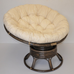 Ratanový papasan houpací pružinový v barvě ratanu hnědá, barevné provedení polstru dle obrázku. | Barva ratanové konstrukce je hnědá Pohodlné houpání zajišťuje soustava 4 pružin uchycená v kovovém pouzdře. Křeslo je zároveň otočné o 360 stupňů. Houpat a táčet se můžete tedy zároveň. Velikost ratanového křesla je 110x110x82 cm, průměr horní části 110 cm, nosnost 110 kg. Křeslo dodáváme ve smontovaném stavu. Pro zajištění maximální pevnosti jsou hlavní spoje ratanové konstrukce šroubovány. Polstr je vyrobený v České republice a je pratelný.