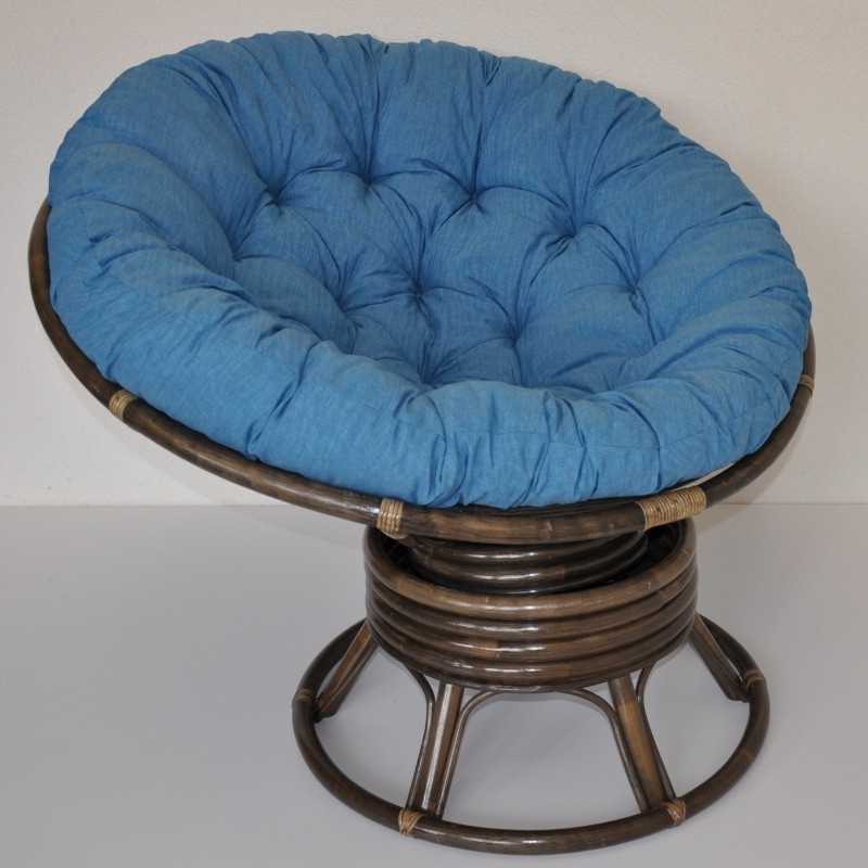 Ratanový papasan houpací pružinový v barvě ratanu hnědá, barevné provedení polstru dle obrázku. | Barva ratanové konstrukce je hnědá Pohodlné houpání zajišťuje soustava 4 pružin uchycená v kovovém pouzdře. Křeslo je zároveň otočné o 360 stupňů. Houpat a táčet se můžete tedy zároveň. Velikost ratanového křesla je 110x110x82 cm, průměr horní části 110 cm, nosnost 110 kg. Křeslo dodáváme ve smontovaném stavu. Pro zajištění maximální pevnosti jsou hlavní spoje ratanové konstrukce šroubovány. Polstr je vyrobený v České republice a je pratelný.
