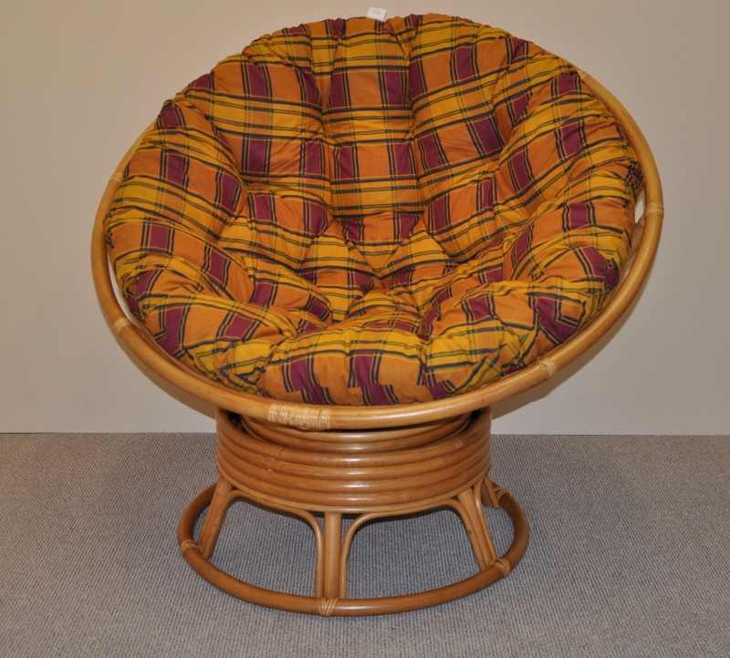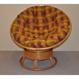 Ratanový papasan houpací pružinový v barvě ratanu medová, barevné provedení polstru dle obrázku. Křeslo je otočné o 360 stupňů. | Barva ratanové konstrukce i ratanového výpletu je medová. Průměr papasanu v horní části je 110 cm. Výška sedu je příjemných 43 cm. Nosnost křesla papasan je 110 kg. Kovový díl se čtyřmi pružinami zajišťuje pohodlné houpání a možnost otáčení křesla o 360 stupňů. Polstr je vyrobený v České republice a je pratelný na 40oC.