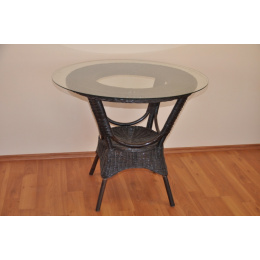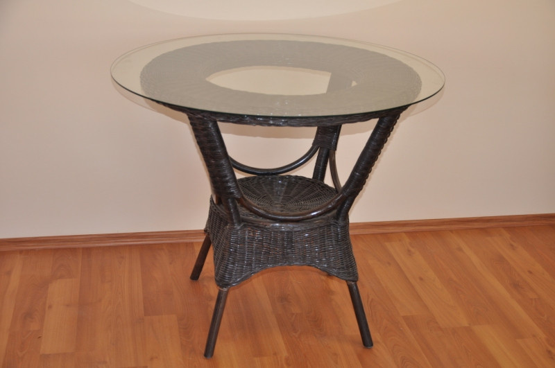 Ratanový stolek Wanuta je vyroben z přírodního ratanu s pevnou ratanovou konstrukcí a výpletem z ratanových proutků průměru 3 mm, barva ratanové konstrukce hnědá | výška stolku 77 cm, pruměr skleněné desky 90 cm, nosnost 30 kg
