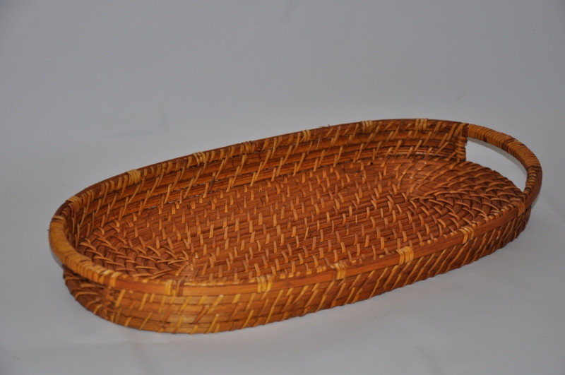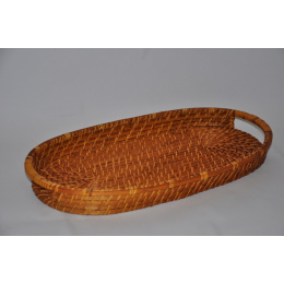 Tác vyrobený z přírodního ratanu v medové barvě. | Velikost tácu je 47x33x4 cm